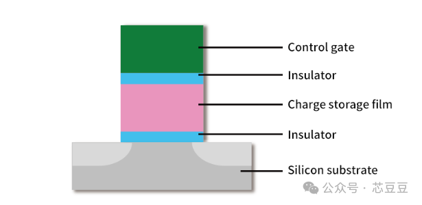 闪存的基本存储单元是一个带浮栅的MOS管。其结构可以类比为一只“开关”,控制栅极就像是“开关的把手”,通过调整控制栅极上的电压来控制电流的流动,从而实现数据的存储和读取。