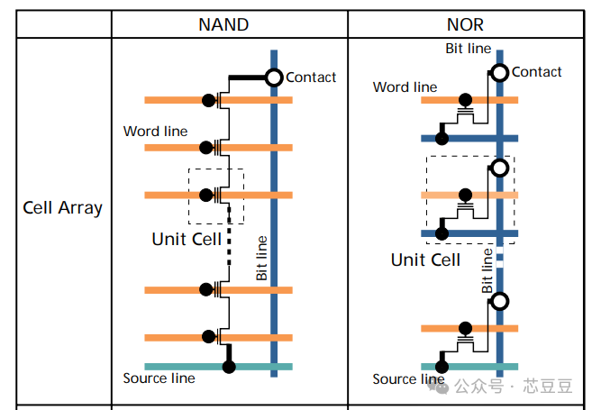 与NAND闪存不同,NOR闪存的存储单元是并联排列的。每个存储单元都直接与位线连接,可以直接对每个单元进行随机访问,因此读取速度快,尤其适用于需要频繁访问的应用场景,如固件存储、嵌入式系统等。